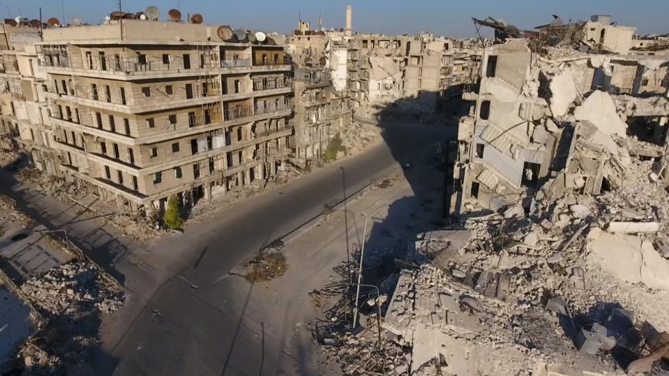 A birds eye view of the destruction caused in the war-torn Syrian city of Aleppo.